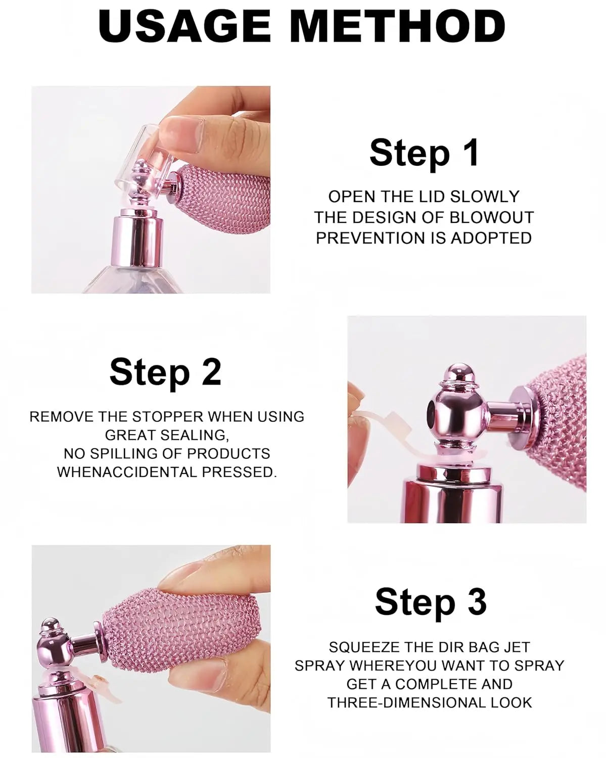 3️⃣ Lightly mist on your face, collarbones, arms, or legs.